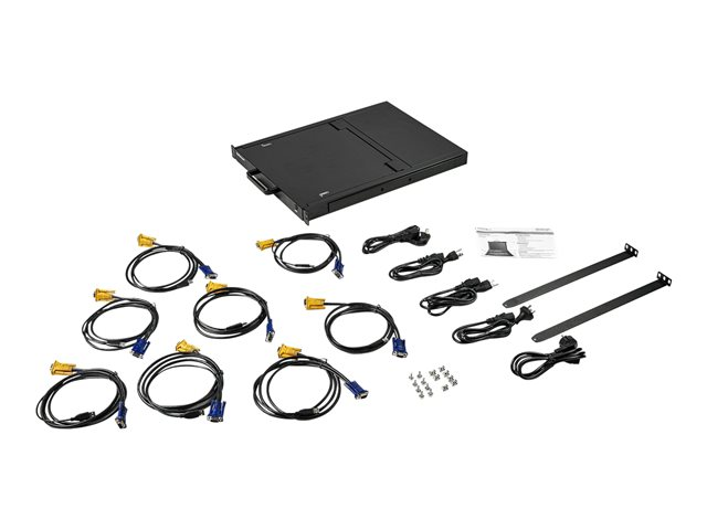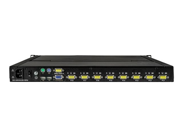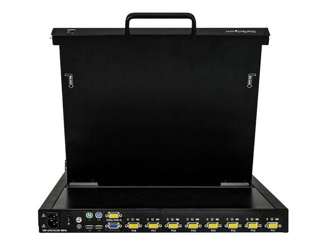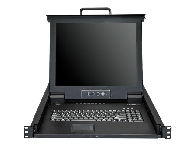 StarTech.com 8-ports rackmonterad KVM-konsol med 1,8 m kablar - Integrerad KVM-switch med 17-tums LCD-skärm - 1U LCD KVM-låda - OSD KVM - Hållbar 50 000 MTBF - USB + VGA-support - KVM-konsol med omkopplare för tangentbord/video/mus - 8 portar - USB - 17" - kan monteras i rack - 1280 x 1024 @ 60 Hz - 250 cd/m² - 1000:1 - 5 ms - VGA - svart - 1U