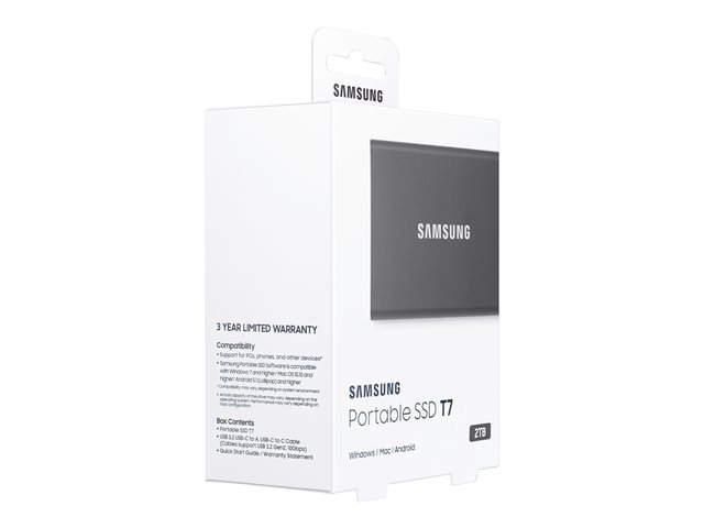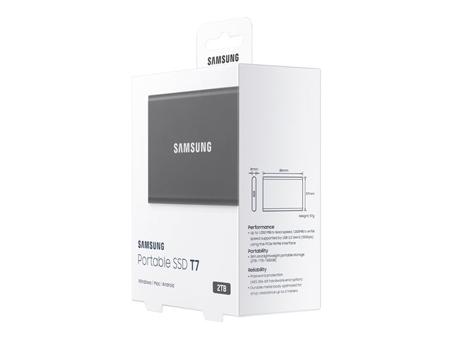 Samsung T7 MU-PC2T0T - SSD - krypterat - 2 TB - extern (portabel) - USB 3.2 Gen 2 (USB-C kontakt) - 256 bitars AES - Titan gray