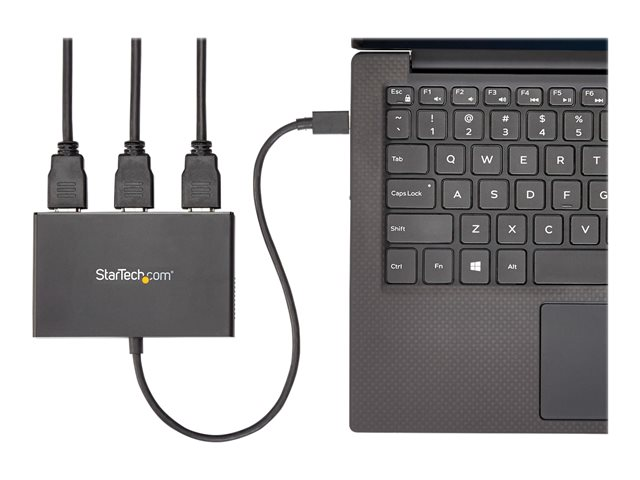 StarTech.com 3-Port Multi Monitor Adapter, USB-C to 3x HDMI Video Splitter, USB Type-C DP 1.2 Alt Mode to HDMI MST Hub, Dual 4K 30Hz or Triple 1080p, Thunderbolt 3 Compatible, Windows Only - Multi Stream Transport (MSTCDP123HD) - Videokort - 24 pin USB-C hane till HDMI hona - 30 cm - svart - 4K30 Hz (3840 x 2160) stöd - för P/N: TB33A1C