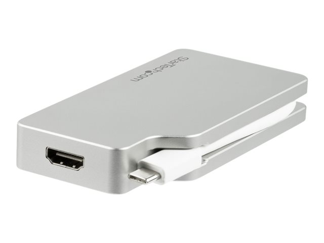 StarTech.com 4-i-1 USB-C-videoadapter med flera portar - aluminium - 4K 30Hz - silver - Videokort - USB-C hane till HD-15 (VGA), DVI-D, HDMI, Mini DisplayPort hona - 10.5 cm - silver - stöd för 4K, aktiv CDPVGDVHDMDP