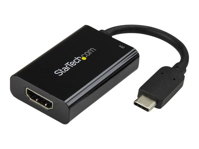 StarTech.com USB C till HDMI 2.0-adapter med strömförsörjning - videokonverterare USB Type-C till HDMI-skärm för 4K vid 60 Hz - port som ger strömförsörjning på 60 W för direktladdning - Thunderbolt 3-kompatibel - svart - Videokort - 24 pin USB-C hane till HDMI, USB-C (enbart ström) hona - svart - USB Power Delivery (60W), 4K60 Hz (4096 x 2160) stöd