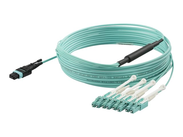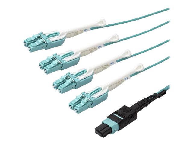 StarTech.com MTP to LC Breakout Cable - 15 ft / 5m - OM3 Multimode - 40Gb - Pull Tab - Plenum - MPO / MTP Connector - Fiber Optic Cable (MPO8LCPL5M) - Övergångskabel - MTP/MPO multi-mode (hona) tryck/dra till LC multiläge (hane) tryck/dra - 5 m - 5 m - fiberoptisk - 50/125 mikron - OM3 - plenum - havsblå