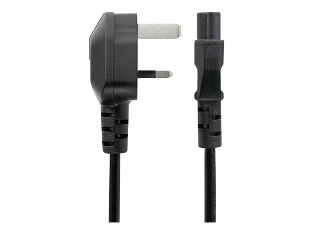 StarTech.com 2 m brittisk strömkabel för bärbara datorer, BS 1363 till C5 (Clover Leaf), 2,5 A 250 V, 18AWG, brittisk ersättningsnätsladd för bärbara datorer, nätsladd för skrivare, laddarkabel för bärbara datorer, strömförsörjningskabel för bärbara datorer - Strömkabel - IEC 60320 C5 till BS 1363 (hane) - AC 250 V - 2 m - formpressad - svart