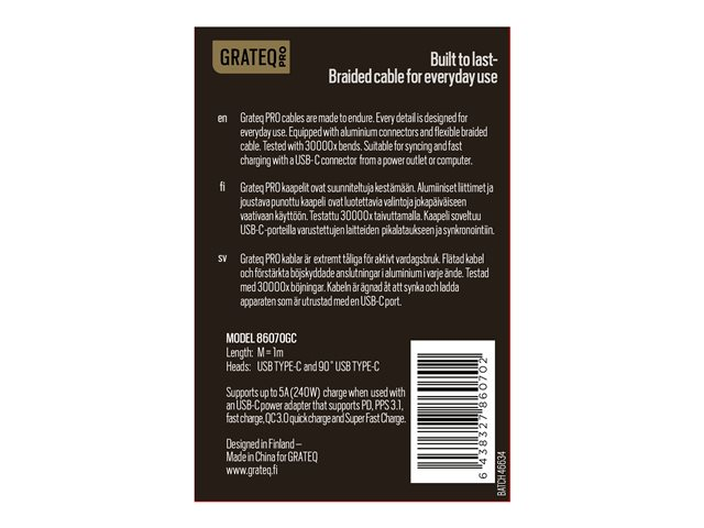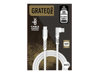GRATEQ PRO - USB-kabel - 24 pin USB-C (hane) till 24 pin USB-C (hane) vinklad - 5 A - 1 m - USB-strömförsörjning (240W) - vit 86070GC
