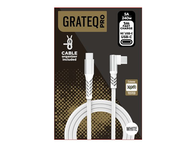 GRATEQ PRO - USB-kabel - 24 pin USB-C (hane) till 24 pin USB-C (hane) vinklad - 5 A - 1 m - USB-strömförsörjning (240W) - vit