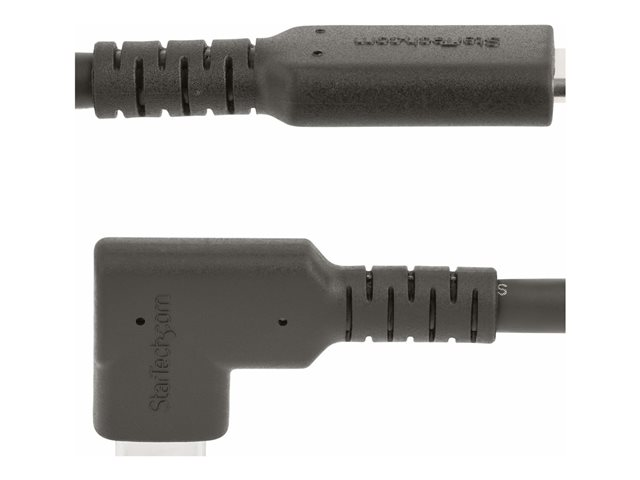 StarTech.com 1.6ft (50cm) Rugged Right Angle USB-C Cable, USB 3.2 Gen 2 (10 Gbps), USB C to C Data Transfer Cable, 4K 60Hz DP Alt Mode, 100W Power Delivery - 90 Degree USB-C Cable (RUSB31CC50CMBR) - USB-kabel - USB-C (hane) rak till USB-C (hane) högervinklad - USB 3.2 Gen 2 - 50 cm - 4K60Hz stöd, robust - svart
