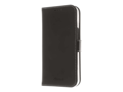 Insmat Exclusive - Vikbart fodral för mobiltelefon - genuint läder, termoplastisk polyuretan (TPU), kartong+papper+aluminiumfolie, bomullssömmar - svart - för Apple iPhone 13 mini