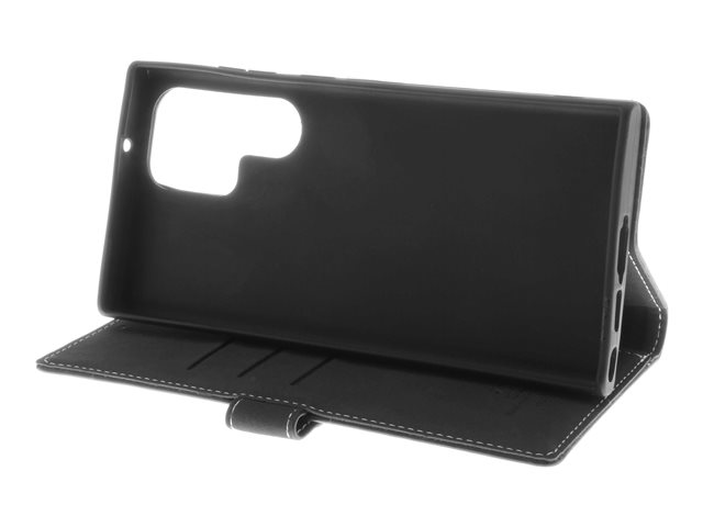 Insmat Exclusive - Vikbart fodral för mobiltelefon - genuint läder, papper, polyuretan, kartong, bomull, aluminiumfolie, brons, termoplastisk polyuretan (TPU) - svart - för Samsung Galaxy S23 Ultra
