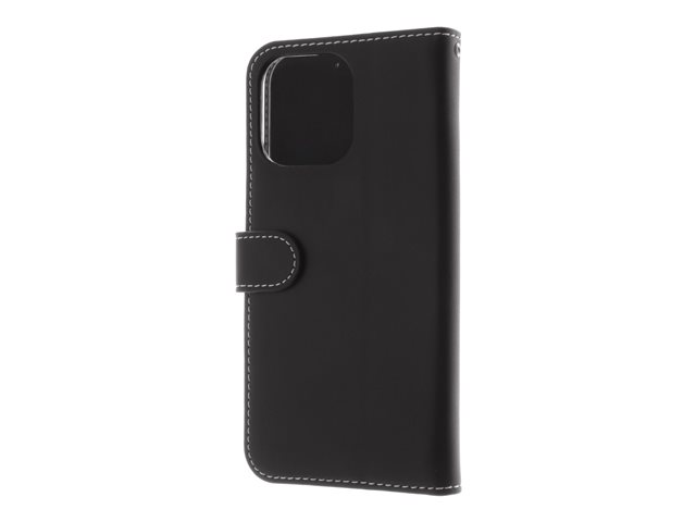 Insmat Exclusive - Vikbart fodral för mobiltelefon - läder, kartong+papper+aluminiumfolie, polykarbonat (PC) - svart - för Apple iPhone 15 Pro Max