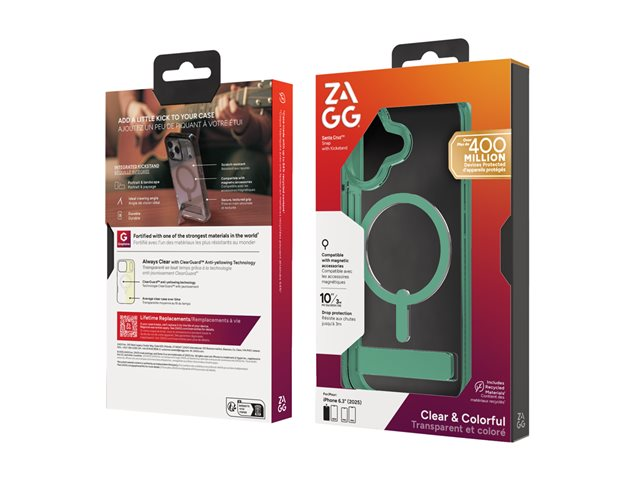 Zagg Santa Cruz Snap - Baksidesskydd för mobiltelefon - med fällbart ställ - MagSafe-kompatibilitet - mystisk grön - för Apple iPhone 17 702318960