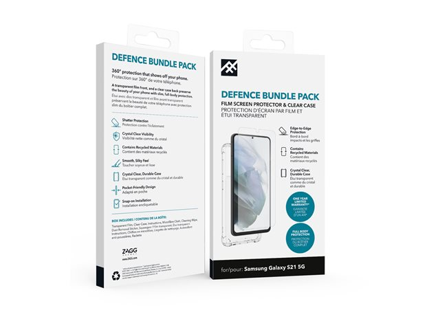 iFrogz Defence - Baksidesskydd för mobiltelefon - CrystalClear - med skärmskyddare - för Samsung Galaxy S21 5G