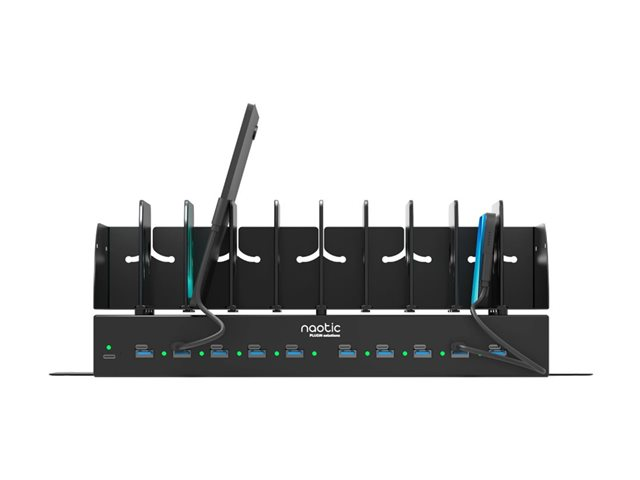 Naotic Plug In - Laddningsstation - 30 Watt - 2.5 A - PD - 20 utdatakontakter (10 x 4-stifts USB typ A, 10 x 24 pin USB-C) - på kabel: USB-C - svart