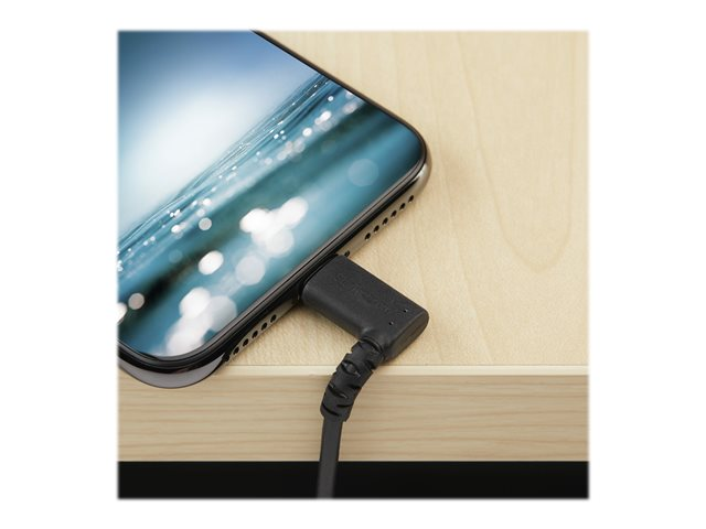 StarTech.com 1m tålig USB-A till Blixtkabel - svart 90° högervinkad, robust aramidfiber USB typ A till Blixtuppladdning/synkron sladd - Apple MFi-certifierad - iPhone - Lightning-kabel - Lightning hane vinklad till USB hane - 1 m - dubbelt skärmad - svart