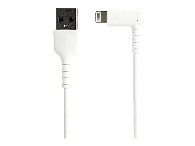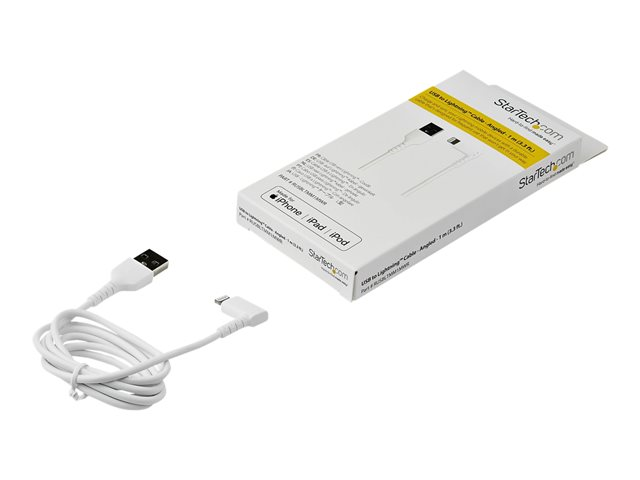 StarTech.com 1m tålig USB-A till Blixtkabel - vitt 90° högervinkad, robust aramidfiber USB typ A till Blixtuppladdning/synkron sladd - Apple MFi-certifierad - iPhone - Lightning-kabel - Lightning hane vinklad till USB hane - 1 m - dubbelt skärmad - vit