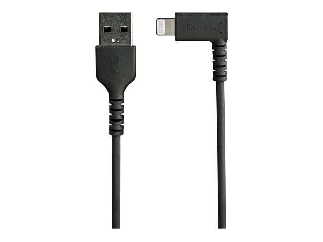 StarTech.com 2m tålig USB-A till Blixtkabel - svart 90° högervinkad, robust aramidfiber USB typ A till Blixtuppladdning/synkron sladd - Apple MFi-certifierad - iPhone - Lightning-kabel - Lightning hane vinklad till USB hane - 2 m - dubbelt skärmad - svart RUSBLTMM2MBR