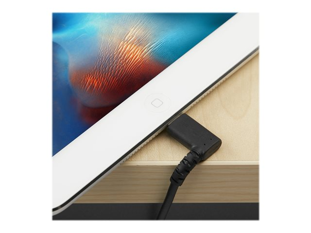 StarTech.com 2m tålig USB-A till Blixtkabel - svart 90° högervinkad, robust aramidfiber USB typ A till Blixtuppladdning/synkron sladd - Apple MFi-certifierad - iPhone - Lightning-kabel - Lightning hane vinklad till USB hane - 2 m - dubbelt skärmad - svart
