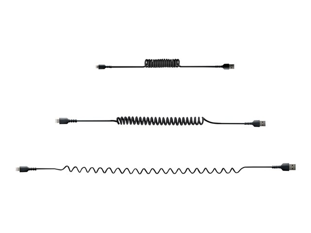 Denna Lightning till USB A-spiralkabel klarar av de dagliga kraven på att ladda och synkronisera dina mobila enheter. Den drar ihop sig till 32 cm vilket gör den kompakt och enkel att förvara.