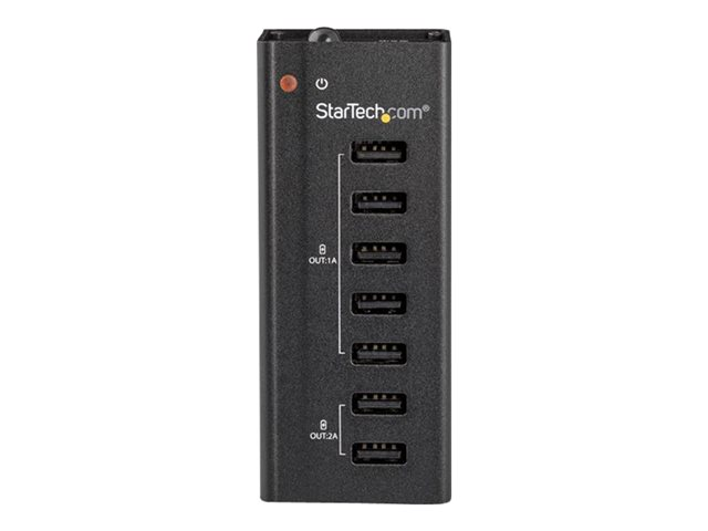 StarTech.com USB-laddningsstation med 7 portar, 5x 1A-portar och 2x 2A-portar - Laddningsremsa + växelströmsadapter - 5 A - 7 utdatakontakter (USB) - svart
