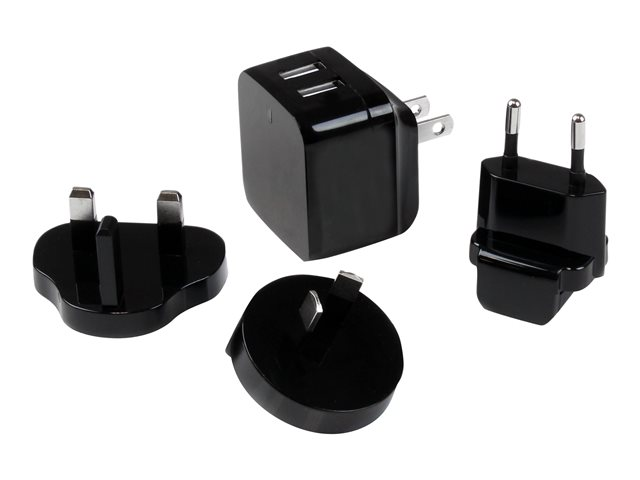 StarTech.com USB-väggladdare med två portar - kraftfull (17 W/3,4 A) - reseladdare (internationell) - Strömadapter - 17 Watt - 3.4 A - 2 utdatakontakter (USB) - svart - för P/N: USBLT1MWS, USBLT2MBR, USBLT2MW, USBLT30CMW, USBLTM1MBK, USBLTM1MWH, VID2VGATV3