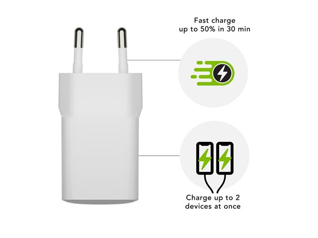 | Egenskaper | Överhettningsskydd, kompakt design, snabbladdning, laddar samtidigt upp till 2 enheter, GaN Technology, 100 % återvinningsbar |