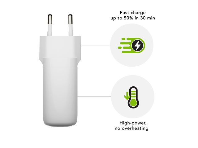 | Egenskaper | Överhettningsskydd, snabbladdning, GaN Technology, 100 % återvinningsbar |