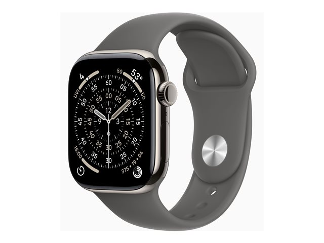 Apple Watch Series 11 (GPS + Cellular) - 42 mm - naturlig titan - smart klocka med sportband - fluoroelastomer - klippgrå - bandstorlek: S/M - 64 GB - Bluetooth, LTE, Wi-Fi 4, UWB - 5G - 34.6 g MF8M4QN/A