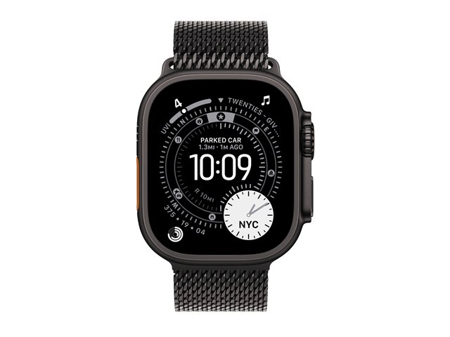 Apple Watch Ultra 3 - 49 mm - svart titan - Ja smart klocka med milanesisk loop - bandstorlek: M - 64 GB - LTE, NFC, Wi-Fi 4, UWB, Bluetooth - 5G - 61.8 g