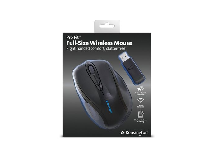Kensington Pro Fit Full-Size - Mus - högerhänt - optisk - 6 knappar - trådlös - 2.4 GHz - trådlös USB-mottagare - svart