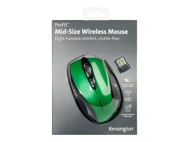 Kensington Pro Fit Mid-Size - Mus - högerhänt - optisk - trådlös - 2.4 GHz - trådlös USB-mottagare - Smaragdgrön