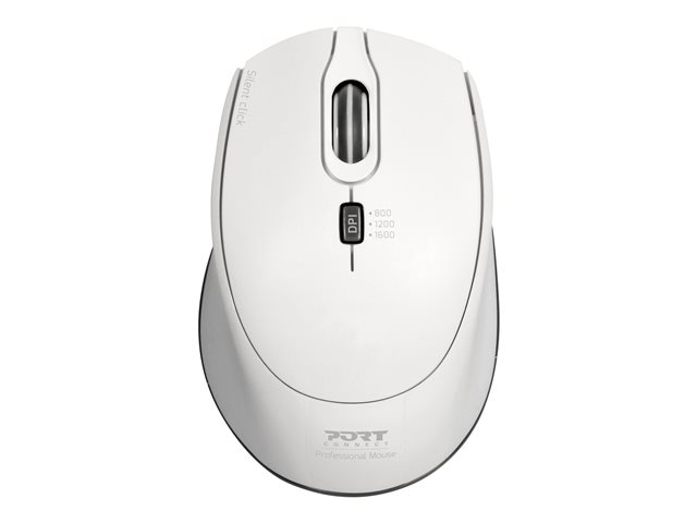 PORT Connect SILENT - Mus - optisk - trådlös - 2.4 GHz - USB/USB-C trådlösa mottagare - vit 900714
