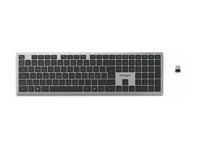 Kensington Pro Fit KB535 EQ - Tangentbord - flera enheter, uppladdningsbar - full size - med LED-indikator - trådlös - 2.4 GHz, Bluetooth 5.4 - QWERTY - hela norden - rymdgrå - detaljhandel - FSC-kartong