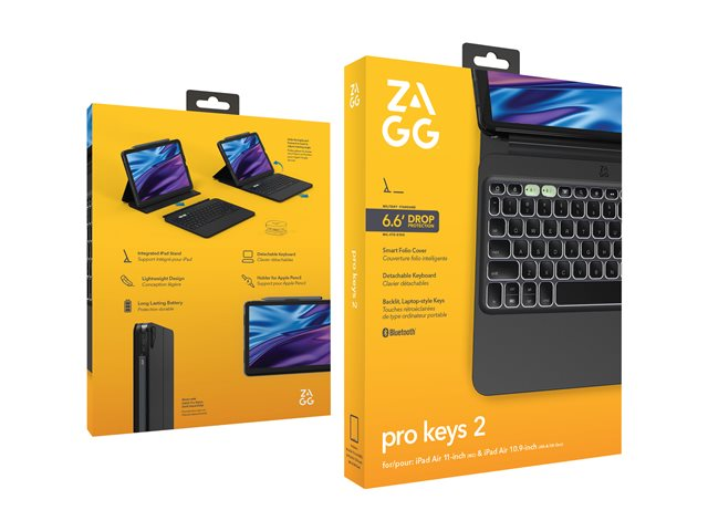 ZAGG Pro Keys 2 - Tangentbord och foliefodral (folioomslag) - bakgrundsbelyst - trådlös - Bluetooth - QWERTY - Nordisk - för Apple 11-inch iPad Air (M2, M3) 103414646