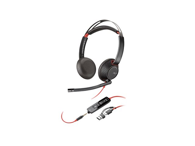 HP Poly Blackwire 5220 - Headset - på örat - kabelansluten - USB-C, 3,5 mm kontakt - svart - Certifierad för Skype for Buisness, Cisco Jabber-certifierad, Avaya-certifierad, Certifierad för Microsoft-teams, Zoomcertifierad, UC-certifierad, Works With Chromebook Certified 8X231A6