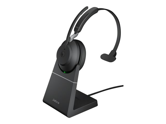 Jabra Evolve2 65 MS Mono - Headset - på örat - konvertibel - Bluetooth - trådlös - USB-A - ljudisolerande - svart - med laddningsställ - Certifierad för Microsoft-teams