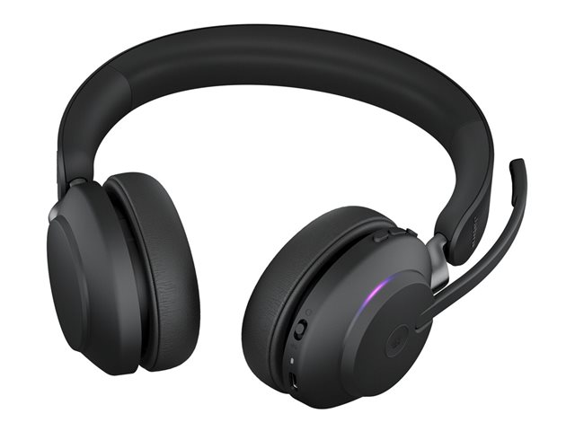Jabra Evolve2 65 MS Stereo - Headset - på örat - Bluetooth - trådlös - USB-C - ljudisolerande - svart - med laddningsställ - Certifierad för Microsoft-teams