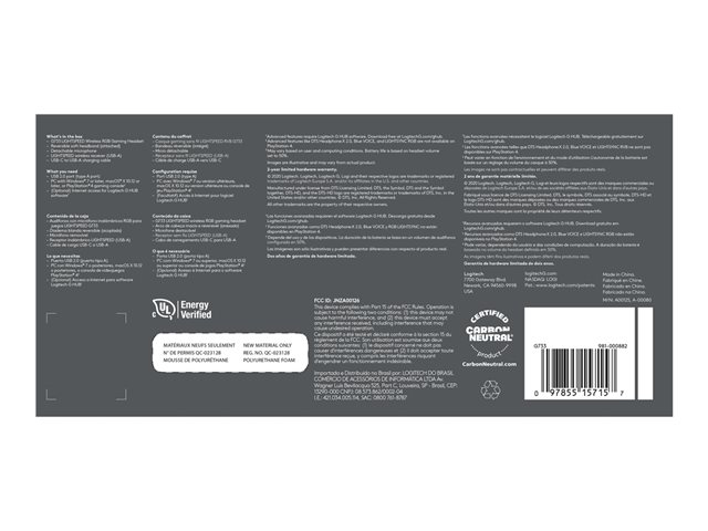 | Egenskaper | LIGHTSYNC RGB, Pro-G-enheter, Blue VO!CE Mic Technology, LIGHTSPEED trådlös teknik |