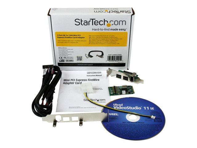 StarTech.com 3 Port 2b 1a 1394 Mini PCI Express FireWire Card Adapter - FireWire adapter - PCIe Mini Card - FireWire 800 - 2 ports + 1 x FireWire - MPEX1394B3 - FireWire-adapter - PCIe Mini Card - FireWire 800 - 2 portar + 1 x FireWire