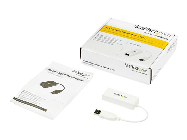 StarTech.com USB 3.0 to Gigabit Ethernet Network Adapter - 10/100/1000 NIC - USB to RJ45 LAN Adapter for PC Laptop or MacBook (USB31000SW) - Nätverksadapter - USB 3.0 - Gigabit Ethernet - vit