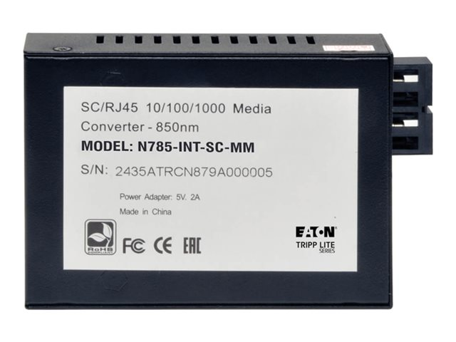 Eaton Tripp Lite Series Gigabit Multimode Fiber to Ethernet Media Converter, 10/100/1000 SC, International Power Supply, 850 nm, 550 m (1,804 ft.) - Fibermediekonverterare - 1GbE - 10Base-T, 100Base-TX, 1000Base-T - RJ-45 / SC-läge (multi-mode) - upp till 550 m - 850 nm N785-INT-SC-MM