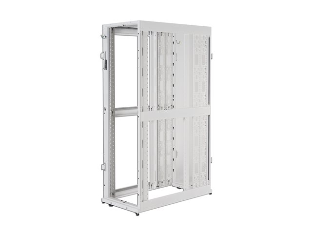Flerfunktionellt rackskåp som optimerats för enkel installation, kabelhantering, integrerad strömdistribution och maximering av luftflöde.