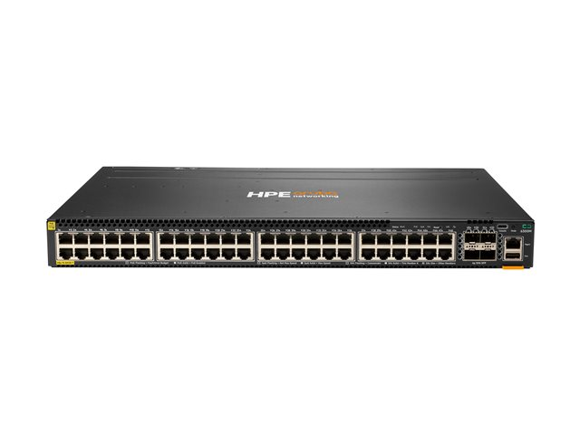 HPE Aruba 6300M - Switch - L3 - Administrerad - 48 x 10/100/1000 (PoE+) + 4 x 1 Gb/10 Gb/25 Gb/50 Gb SFP56 (upplänk/stapling) - framsidan och sida till baksidan - rackmonterbar - PoE+ (1440 W)