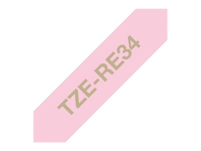 Brother TZe-RE34 - Guld på rosa - Rulle (1,2 cm x 4 m) 1 kassett(er) bandtejp - för Brother PT-D600, H110; P-Touch PT-D450; P-Touch Cube PT-P300; P-Touch Embellish PT-D215