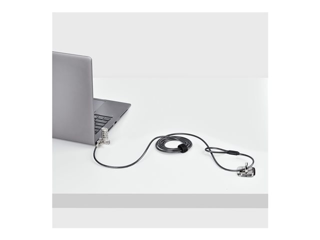 StarTech.com Universal Laptop Lock 6.6ft (2m), Security Cable For Notebook Compatible With Noble Wedge/Nano/K-Slot; Keyless Combination Locking Cable - Anti-Theft Cut-Resistant Steel Cable (UNIVC4D-LAPTOP-LOCK) - Lås för säkerhetskabel - svart, silver - 2 m