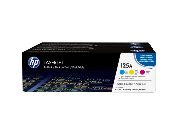 HP 125A - 3-pack - gul, cyan, magenta - original - LaserJet - tonerkassett (CE259AM) - för Color LaserJet CM1312 MFP, CM1312nfi MFP, CP1215, CP1515n, CP1518ni