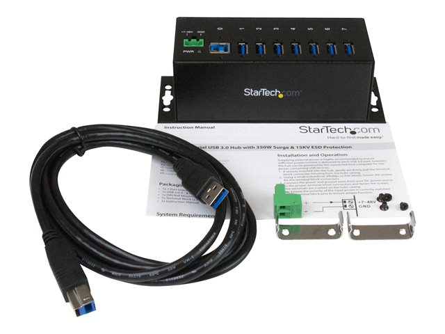 Den tåliga hubben är perfekt för fabriksmiljöer eftersom den stöder ett brett intervall för driftstemperaturer (0 °C till 70 °C) och ger överspännings- och ESD-skydd till varje USB-port, vilket kan förhindra skador på dina anslutna enheter.